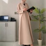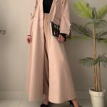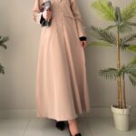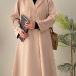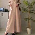 The Corporate Abaya features a structured lapel collar and titch buttons on the front, allowing versatile styling either open or closed. Thoughtfully designed front pockets add convenience, while the generous chest size and flared cut ensure freedom of movement. This abaya balances a tailored, professional look with effortless comfort for ambitious women.