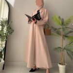 Wear it front-closed as a classic abaya with minimal accessories for a clean, elegant appearance.