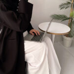 Pair the Corporate Abaya over a western outfit for a modest layered look that blends professionalism with contemporary style.