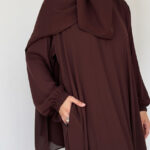 This set includes a matching hijab and niqab. Thus, it creates a complete, coordinated look. For example, you can pair it with simple accessories for a chic vibe. Overall, this abaya is practical, stylish, and perfect for any occasion.