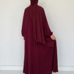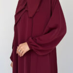 This set includes a matching hijab and niqab. Thus, it creates a complete, coordinated look. For example, you can pair it with simple accessories for a chic vibe. Overall, this abaya is practical, stylish, and perfect for any occasion.