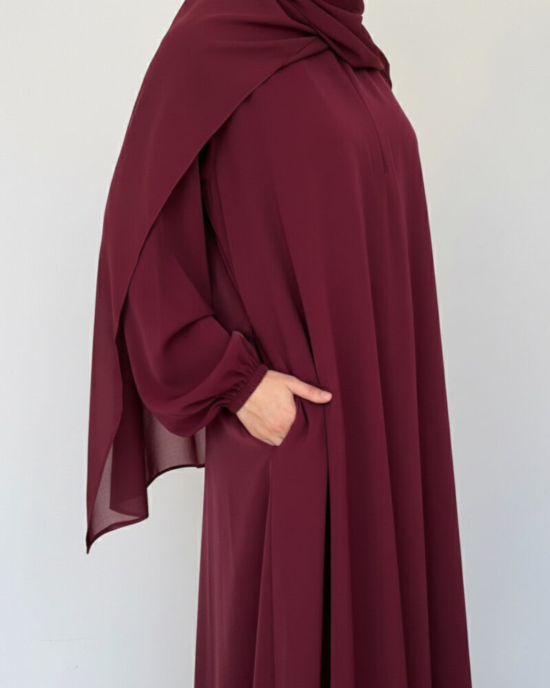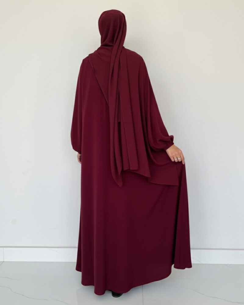 This set includes a matching hijab and niqab. Thus, it creates a complete, coordinated look. For example, you can pair it with simple accessories for a chic vibe. Overall, this abaya is practical, stylish, and perfect for any occasion.